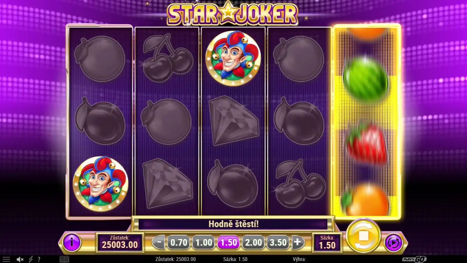 Hrací automat Star Joker od Play’n GO, který českým hráčům nabízí hru s nízkou volatilitou a konzistentními výplatami, více nastavení RTP až do 96,25 % a maximální výhru 5 000násobek sázky, přináší klasický ovocný automat do online éry. Díky 10 výherním liniím a mřížce 5×3 je snadné ho sledovat a funkce jako symbol Star wild, bezplatná otočení s Joker wilds a možnost hazardu přidávají ještě více zajímavosti. S rozsahem sázek od 0,10 do 100 a úplnou kompatibilitou s mobilními zařízeními je snadno přístupný a stále představuje spolehlivou volbu pro lidi, kteří mají rádi tradiční design s moderním nádechem.